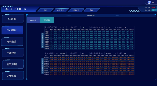BMS监控:满足电池管理系统的参数与限值设置;实现储能电池的电芯、电池簇的温度、