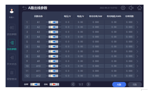 分支回路的电压、电流、有功功率、有功电能、功率因数额定电流设置、各相电流值;