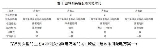 综合列头柜的上述4种列头柜配电方案的优、缺点,建议采用配电方案一。