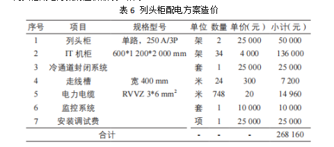 从表6和表7可以看出,两种配电方式的造价相差105840元,但智能小母线配电方式可以多安装2个IT机柜,假设每机柜的月租金(不含电费)为2500元,则多花的投资部分,其回收期约为1.76年。在10年的运营期内,小母线配电方式可以为增加租金收入约49.4万。
