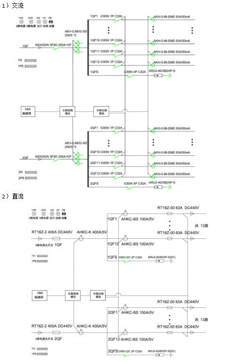 列头柜配电方案如图3所示,智能小母线配电方案如图7所示。