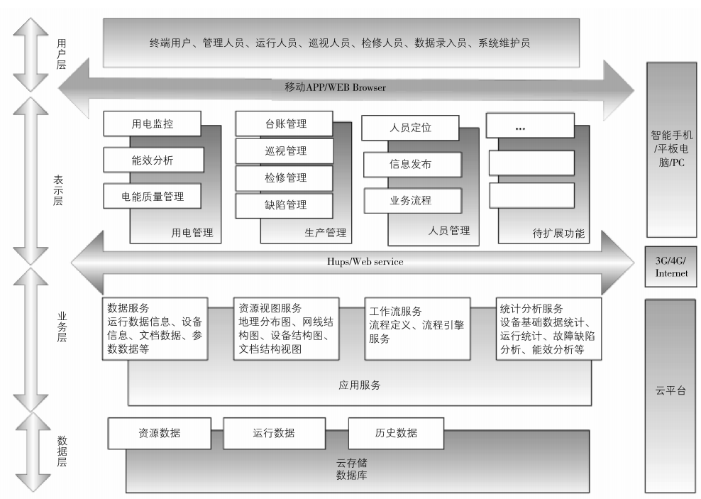 系统软件包括系统应用服务和数据服务软件,提供了包括基础信息管理服务、数据采集和存储服务、运行监视和告务、运行分析服务、数据分析服务等多种功能模块[8]。