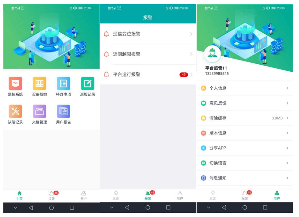 电力运维手机支持“监控系统"、“设备档案"、“待办事项"、“巡检记录"、“缺陷记录"、“文档管理"和“用户报告"七大模块,支持一次图、需量、用电量、视频、曲线、温湿度、同比、环比、电能质量、各种事件报警查询,设备档案查询、待办事件处理、巡检记录查询、用户报告、文档管理等。