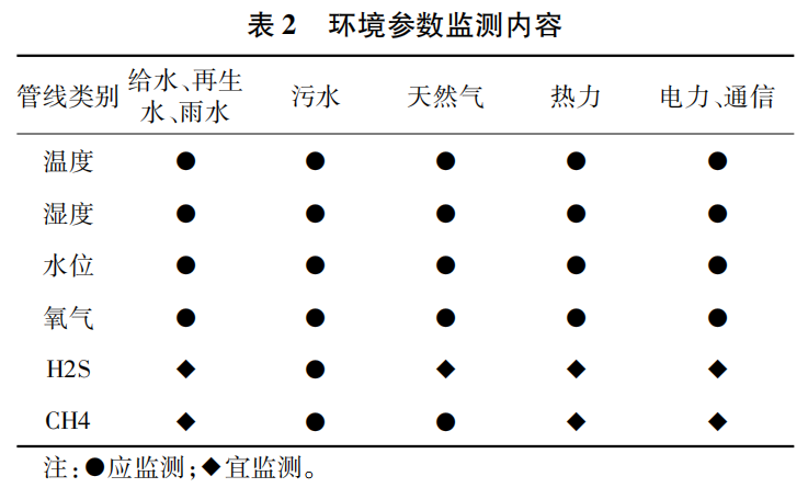 与火灾自动报警及联动系统相类似,同样在弱电控制室中设置一监控主机并通过千兆工业以太环网与各分区监控系统进行通信。各分区监控系统包括:现场检测仪表系统、防入侵报警系统、视频监控系统、出入口控制系统、电子巡查系统以及环境参数监测系统。主要监控风机运行工况、照明系统运行工况、排水泵运行工况、配电柜智能网络仪表、红外对射装置,H2S、CH,气体、氧气浓度值、温湿度探测器以及静压式液位计。其中环境监测指标如表2所示。