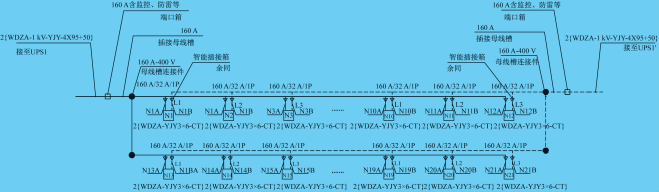 数据中心智能母线供配电系统采用树干式的供配电系统,UPS总输出配电柜至各IT设备机柜之间采用两条干线(智能母线)连接的配电方式。其优点是消耗的有色金属导体量相对较少、安装施工快捷方便、即插即用、系统扩展灵活,可满足不同承租用户的个性化业务用电容量,易于扩展与变更。与电力电缆相比,智能母线可靠性更高、工程生命周期长,并且可重复利用。其缺点是智能母线主干线发生故障时,影响范围大,但母线干线的故障概率很低。