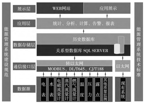 (4)展示层:负责能源管理系统的WEB数据发布、应用展示等,提供与现有系统的数据接口。