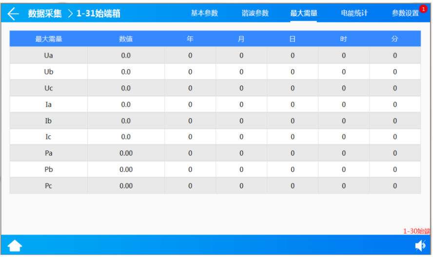 显示电压、电流、功率的大需量的数值及发生时间。