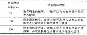表1不同燃弧持续时间下对设备造成的损坏
