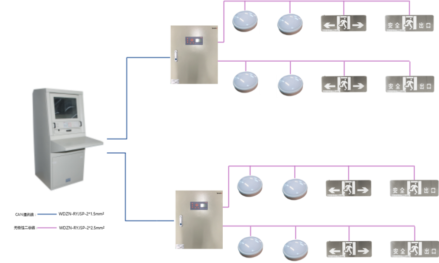 (3)应急照明控制器与集中电源或应急照明配电箱的通信中断时、集中电源或应急照明配电箱与灯具的通信中断时,非持续灯具应急点亮、持续型灯具由节电点亮模式转入应急点亮模式。