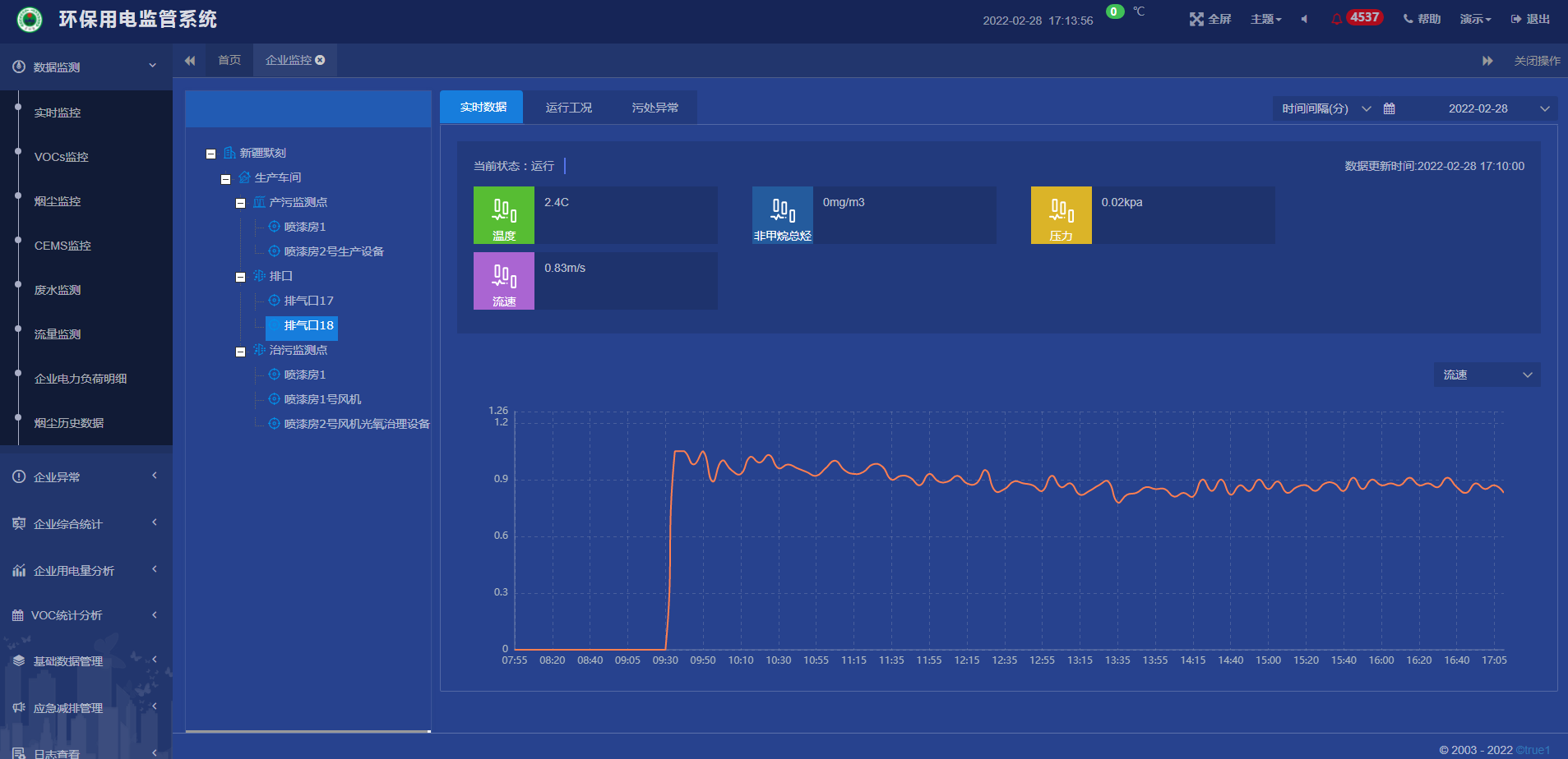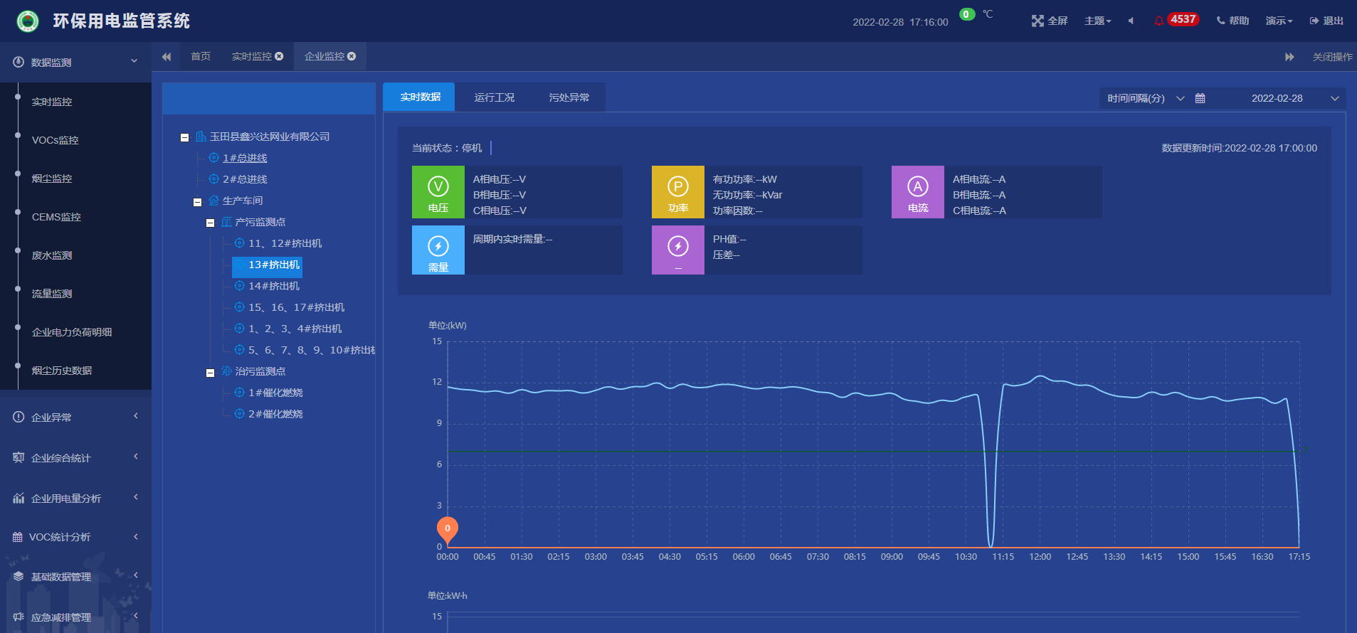 提供信息化管理手段,为企业提供环保设备异常、设备故障告警功能,避免企业因环保设备停运造成的超标排放,有效降低设备停机及生产事故风险。