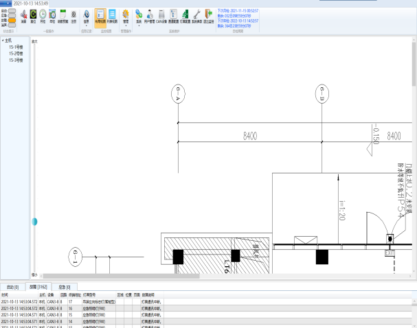 包含工具栏、平面展示、图层列表、状态栏, 可以查看所有灯具状态与数量