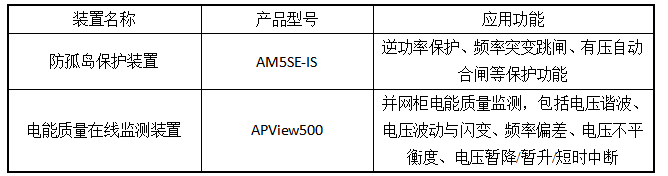 针对上述情况,本解决方案利用防孤岛保护装置采集并网电压、频率及电网进线电流等信号,当发生孤岛现象时,快速切除并网点,使本站与电网侧快速脱离。同时配置电能质量在线监测装置,对电压谐波、电压波动与闪变、频率偏差、电压不平衡度、电压暂降/暂升/短时中断等进行实时监测。通过这两种设备在光伏并网柜中的使用,为电网的可靠运行提供保障。本解决方案设备配置方案如表一。