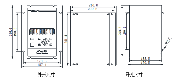 本装置为嵌入式安装方式,可以集中安装于控制室的屏或柜上,也可分散安装于开关柜上。