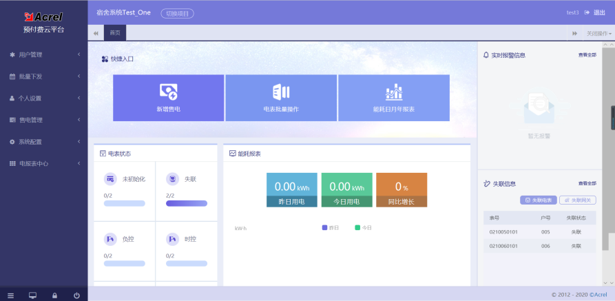 图1 宿舍版预付费云平台主界面