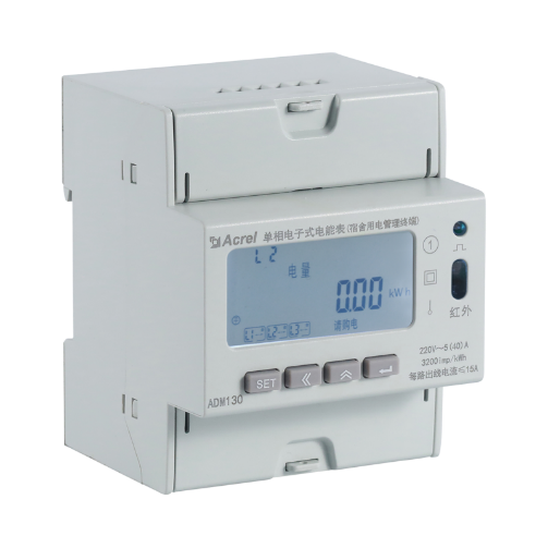 ADM130宿舍用电管理终端,支持火线“一进三出"总电能和L1、L2、L3三路出线分路电能计量,基本电参量测量U、I、P、Q、S、PF、F,有功脉冲输出,复费率,跳闸事件记录。4模导轨式安装在宿舍PZ30箱内;可将一路进线分成三路输出,分别计量控制照明、插座、空调回路。