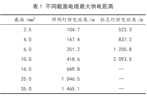 (1)0~300m范围内,照明灯配电线缆截面应不小于10 mm2、标志灯配电线缆截面应不小于2.5mm2;
