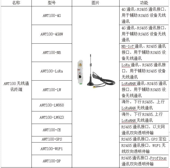 AWT100数据转换模块是开云官方端网站登录入口电气推出的新型数据转换DTU,通讯数据转换包括 2G、4G、NB、LoRa、LoRaWAN,GPS,WiFi,CE,DP 等通讯方式,下行接口提供了标准RS485数据接口,可以方便的连接电力仪表、RTU、PLC、工控机等设备,仅需一次性完成初始化配置,就可以完成对MODBUS设备的数据采集;同时AWT100系列无线通讯终端采用了功能强大的微处理芯片,配合内置看门狗技术,性能可靠稳定。