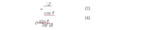 根据R,C并联的公式就可以解出R和C的值。其中θ为R和C并联阻抗的相位角。f为注入源信号的频率。