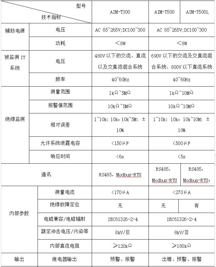 AIM-T系列绝缘监测仪主要应用在工业场所IT配电系统中,主要包括AIM-T300、AIM-T500和AIMT500L三款产品,均适用于纯交流、纯直流以及交直流混合的系统。