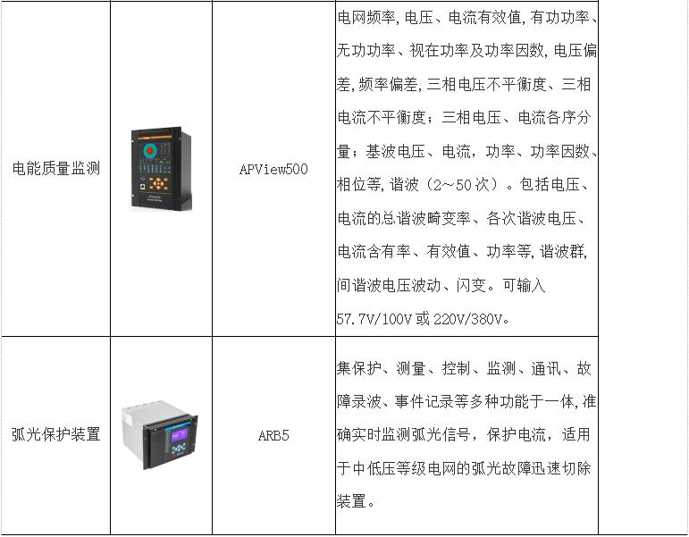 上图为一个1MW分布式光伏电站的示意图,光伏阵列接入光伏汇流箱,经过直流柜汇流后接入集中式逆变器(直流柜根据情况可不设置),最后经过升压变压器升压至10kV或35kV后并入中压电网。由于光伏电站装机容量比较大,涉及到的保护和测控设备比较多,主要如下表: