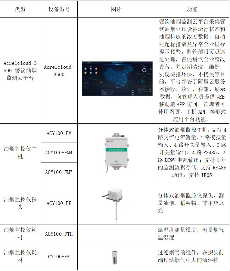 AcrelCloud-3500餐饮油烟监测平台可对餐饮点位进行不间断的数据跟踪与统计分析,在发生油烟浓度预警时,信息可多种途径及时通知相关单位处理,确保油烟等污染物的正常排放,让超标浓度无处可藏,防患于未然。针对各餐饮点位开云官方端网站登录入口通过加装多种产品可以进行检测,主要有ACY100型号餐饮油烟监测设备,外加装电流互感器及温湿度探头。