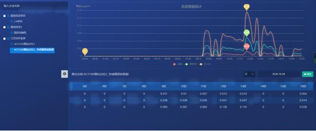 系统可进行监测点的筛选,点击每个监测点信息,可以看到实时数据和24小时数据变化曲线。并且可以看到监测节点的历史告警信息。
