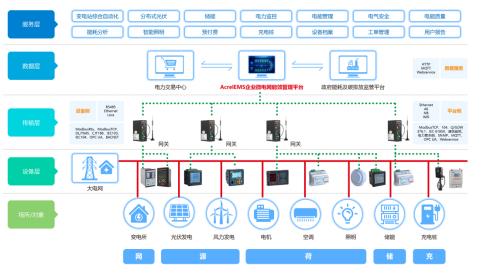 AcrelEMS企业微电网系统通过在源、网、荷、储、充的各个关键节点安装监测、分析、保护、治理装置,通过高性能边缘计算网关采集数据并上传至企业微网平台。平台根据电网价格、用电负荷、电网调度指令等情况,调整各系统控制策略并远程下发,使企业微电网始终合理稳定运行,降低企业用电成本,实现能源互联、信息互动。