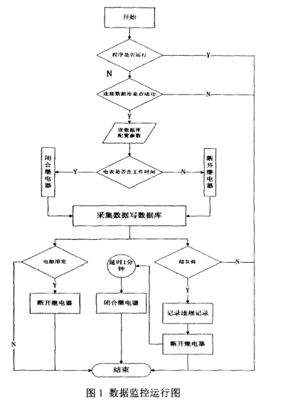 数据采集监控需要安装在局域网内的服务器上,对电表进行实时监控,用于采集电表的实时数据,如电压、电流、功率、断电信息等,对电表进行时间运行的调制。同时,为了防止数据采集监控出现异常导致程序无法运行不能进行实时监控,在出现错误的时候自动重启。