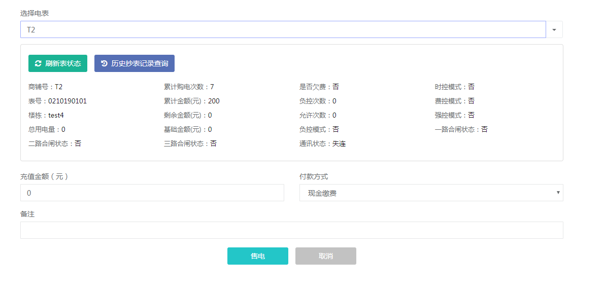 (2)电量控制能力:在没有剩余电量的情况下,会进行自动断电能力,在充值缴费之后自动恢复用电。
