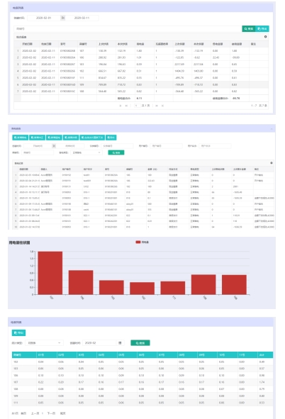 能耗分析:用户和管理员都可查询预付费表或管控表每天的用能状况;可提供能耗分析+财务轨迹一体式综合管理报表,包含用户表的能耗、财务数据、能耗和财务的期初期末值等数据。