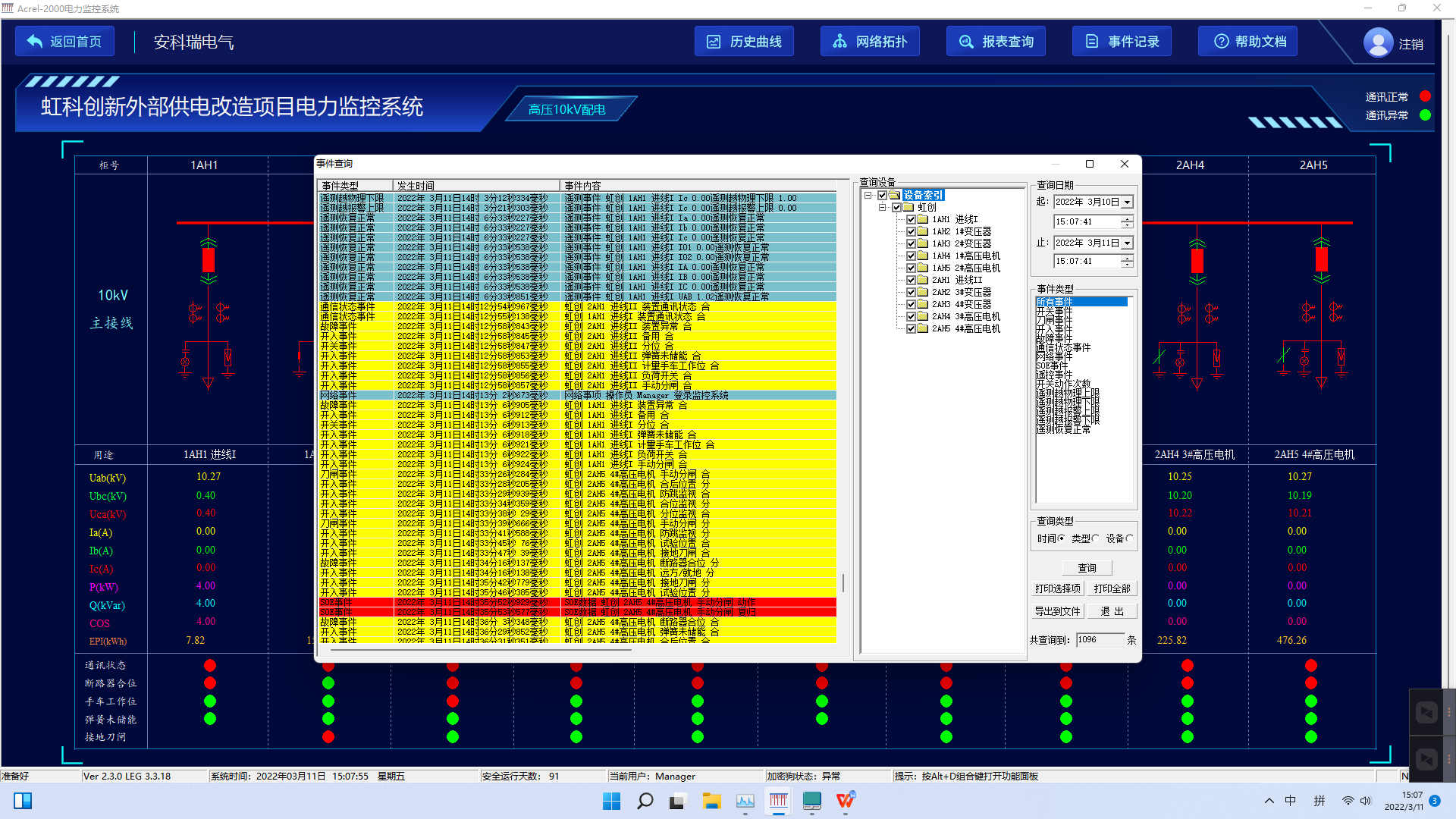 Acrel-2000电力监控系统能够对遥信变位,保护动作、事故跳闸,以及电压、电流、功率、功率因数越限等事件记录进行存储和管理,方便用户对系统事件和进行历史追溯、查询统计、事故分析。可以按时间、类型和设备进行查询和排序。
