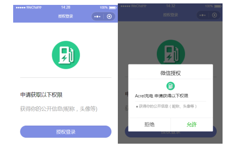 用户通过搜索或者扫码等途径初次打开小程序时,会进入这个页面,需要用户授权登录才可以进入小程序主功能页面,如图所示: