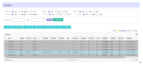 水表预付费:可是查看某区域水表的实时状态信息,并可以进行单表或批量设置水价控阀等操作。