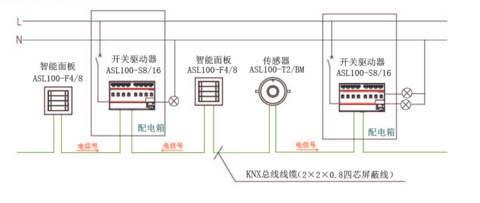 (4)系统采用分布分布式KNX总线结构,搭建简单灵活,系统内各模块互不影响,可独立工作,可靠性更高;