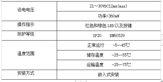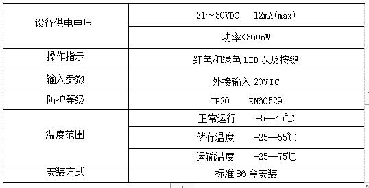 用于接受按键触动信号,可通过区分短按与长按并结合不同参数配置实现开关、调光、场景、窗帘控制、调温、报警等功能,电气参数如下: