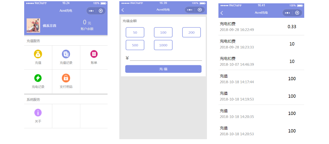 微信小程序:扫码充电,账单支付等功能