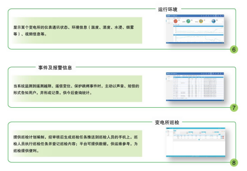 设备级智能融合监控:一次、二次变电设备和变电运行环境监测,如:主变套管、穿墙套管等接头设备温度,避雷器的泄漏总电流、谐波电流和阻眭电流,变电站水浸、漏水报警,优化动力环境控制方案。