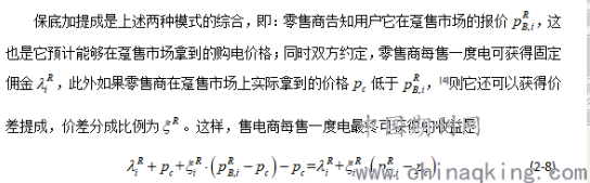 时,售电才能达成。 可见,在固定佣金的模式下,一旦约定了固定佣金价格,用户不再受到趸售市场价格波动的干扰;而售电公司还将面临趸售市场是否竞价成功以及出清价能否低于报价的风险,当出清价低于报价,则售电公司可因成功的报价行为而获得更多的收益。