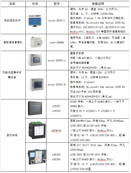 Acrel-2000T无线测温监控系统通过RS 485总线或以太网与间隔层的设备直接进行通讯,系统设计遵循国际标准Modbus-RTU、Modbus-TCP等传输规约,安全性、可靠性和开放性都得到了提高。该系统具有遥信、遥测、遥控、遥调、遥设、事件报警、曲线、棒图、报表和用户管理功能,可以监控无线测温系统的设备运行状况,实现快速报警响应,预防严重故障发生。