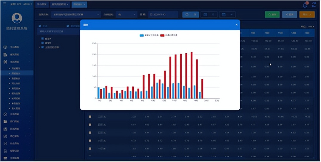 对建筑、区域、分项、支路等结构按日、月、年报表的形式统计对分类能源用能进行统计,支持报表数据导出EXCEL,支持选择建筑数据进行生成