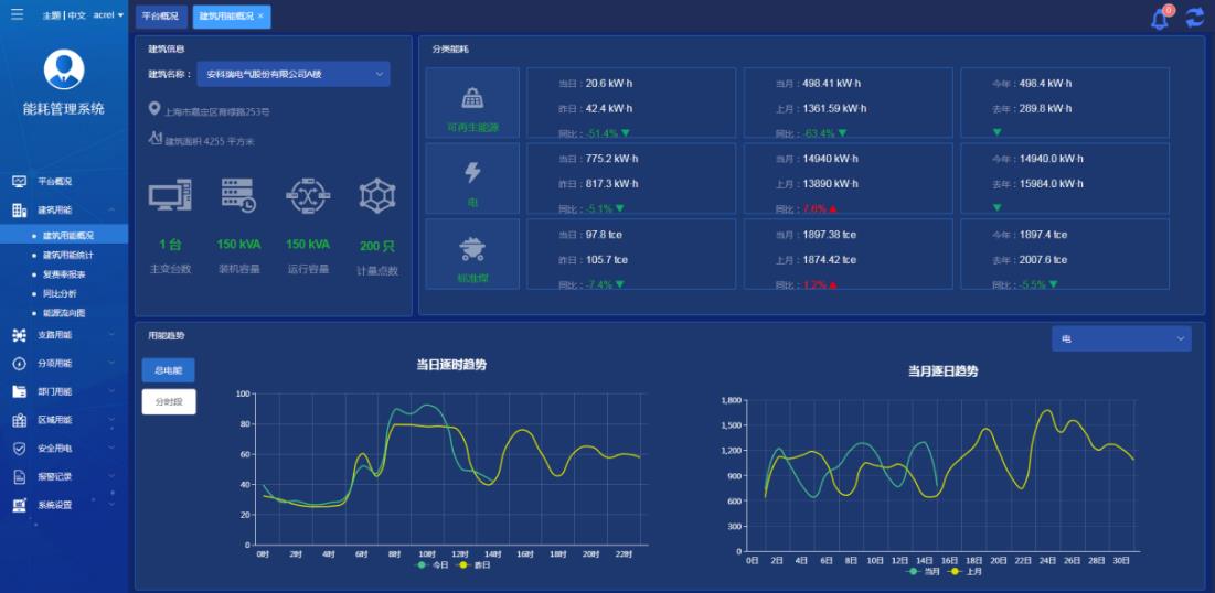 Acrel-5000web建筑能耗分析系统是用户端能源管理分析系统,在电能管理系统的基础上增加了对水、气、煤、油、热(冷)量等集中采集与分析,通过对用户端所有能耗进行细分和统计,以直观的数据和图表向管理人员或决策层展示各类能源的使用消耗情况,便于找出高耗能点或不合理的耗能习惯,有效节约能源,为用户进一步节能改造或设备升级提供准确的数据支撑。用户可按照国家有关规定实施能源计算,分析现状,查找问题,挖掘节能潜力,提出切实可行的节能措施,并向县级以上管理节能工作的部门报送能源计算报告。