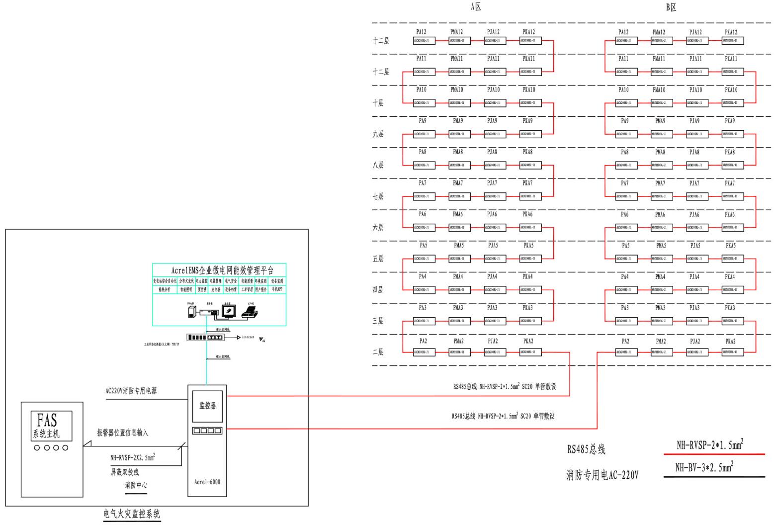 Acre1-6000电气火灾监控系统,是根据国家现行规范标准由开云官方端网站登录入口电气股份有限公司研发的全数字化独立运行的系统,已通过国家消防电子产品质量监督检验中心的消防电子产品试验认证,并且均通过严格的EMC电磁兼容试验,保证了该系列产品在低压配电系统中的安全正常运行,现均已批量生产并在全国得到广泛地应用。该系统通过对剩余电流、过电流、过电压、温度和故障电弧等信号的采集与监视,实现对电气火灾的早期预防和报警,当必要时还能联动切除被检测到剩余电流、温度和故障电弧等超标的配电回路;并根据用户的需求,还可以满足与AcreIEMS企业微电网管理云平台或火灾自动报警系统等进行数据交换和共享。