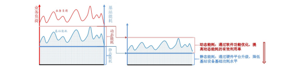 传统的基站设备节能方案依赖于主设备厂家在硬件、软件等产品设计和持续优化能力。硬件方案,新设备可以通过使用新工艺、新材料、新设计等创新技术方案,实现降低设备硬件的基本能耗。软件节能方案,通过智能符号关断、休眠、通道关断等软件功能,在某些场景下实现降低基站能耗。硬件方案受限于器件、工艺的发展情况。软件方案已支持单站的节能策略的配置,更需要综合考虑节能策略。