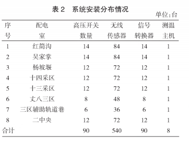 阳煤一矿井下高压配电柜测温项目涉及8个配电室共计8套测温主机。具体分布情况如表2所示