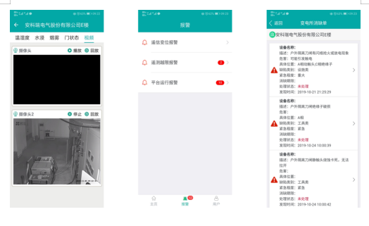 通过手机APP实现配电图查看、视频监视及回放、电力参数查询、需量统计、用能分析,并可通过手机接收报警、执行巡检、记录缺陷.