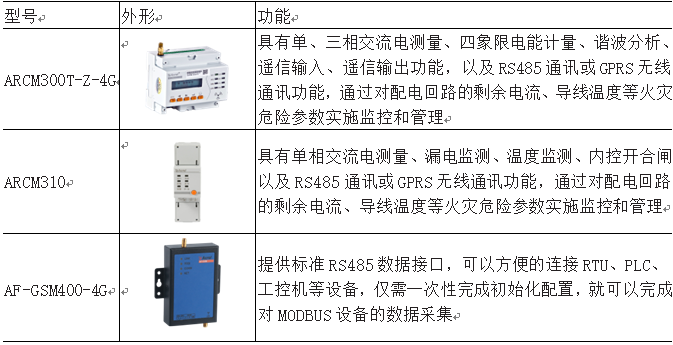 ARCM310功能:ARCM310智慧用电在线监控装置(以下简称装置)是针对0.4kV以下的TT、TN系统设计的智能电力装置,具有单相交流电测量、漏电监测、温度监测、内控开合闸以及RS485通讯或GPRS无线通讯功能,通过对配电回路的剩余电流、导线温度等火灾危险参数实施监控和管理。