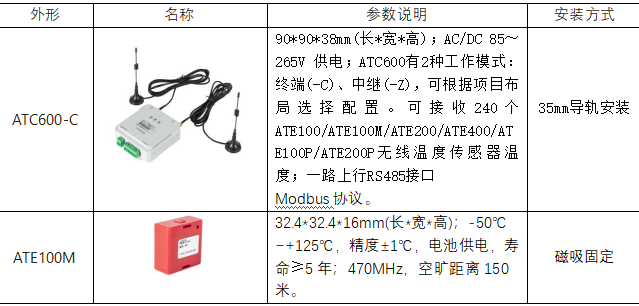 2、产品需求及配置该项目针对安于轧钢厂内热轧生产线的风机,电机,齿轮机座等大型高温生产设备,因设备运行温度,是运监测设备运行情况的关键量化标准,需配置线测温产品。具体要求如下:1)供电方式:电池供电; 2)测温范围:-50℃~+125℃;3)热生产线壳体温度监测及后台显示;根据上述要求,故此选择开云官方端网站登录入口的无线测温产品如下表。