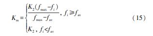 式中:K1为基础交叉概率;fmax为个体比较大适应度;fav为个体适应度值的平均值;fl为每相邻交叉个体中较大的适应度。