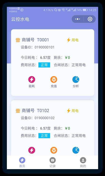用户可以在微信小程序或者微信公众号自助查询电表使用情况以及缴费。
