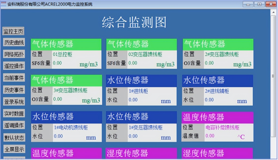 能够显示配电室设备的运行状态,实时监测配电室环境参数信息,实时显示有关故障、告警等信息。